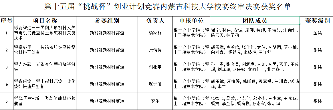 这份优异成绩,正是学院坚持立德树人、深耕创新创业教育、抓实实践育人工作的成果体现。一直以来,学院始终秉持以赛促学、以赛促创的育人理念,积极搭建科创实践平台,鼓励师生主动参与科技创新和创业实践。接下来,学院将继续发挥稀土学科的特色优势,持续提升创新创业教育质量,用心培养更多高素质应用型人才,以科技创新助力区域经济社会高质量发展。