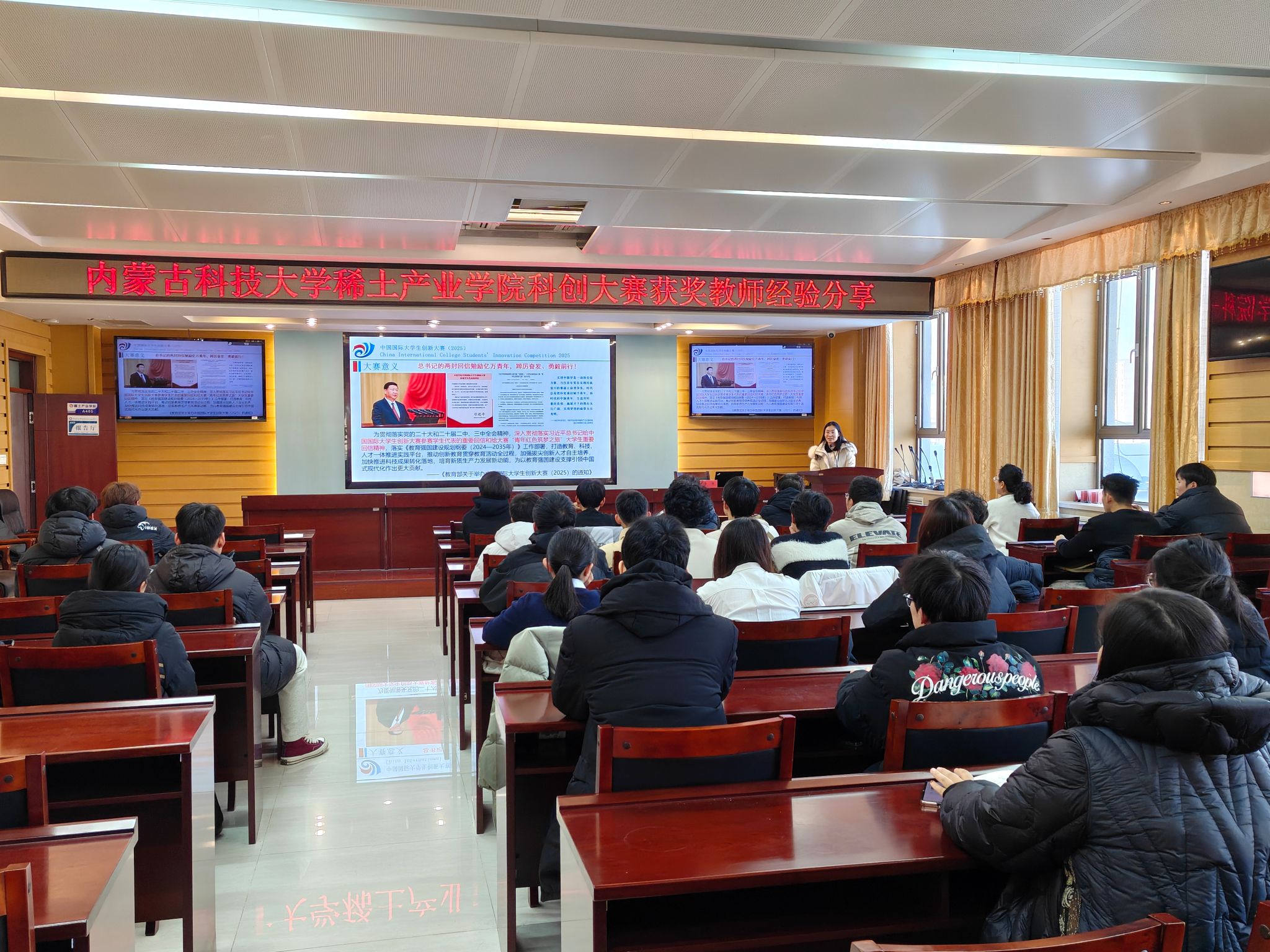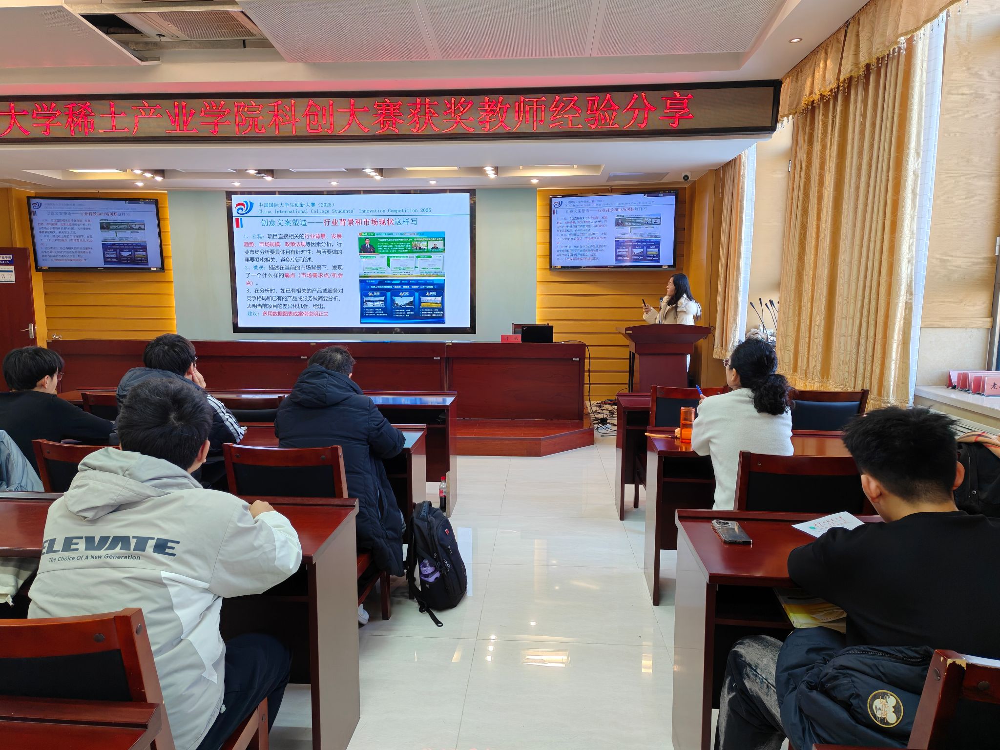 (稀土工程技术学院)在会议室 A405 成功举办大赛经验分享活动。活动邀请到第八届、第十一届中国国际大学生创新大赛银奖优秀指导教师,同时荣获绿色矿山科学技术奖-科技进步一等奖、中国循环经济协会科学技术二等奖的许欣老师主讲。