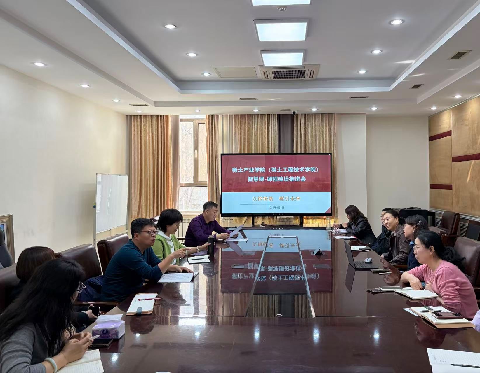 会上,各位课程负责人汇报了智慧课程建设的阶段性成果。目前,学院已有6门课程获批校级智慧课程建设项目,包括冶金原理、有色冶金工艺学、稀土元素化学、材料科学基础、冶金工程设计(钢铁)、冶金工程基础实验,另有7门专业课程已完成平台搭建及资料完善。教师通过引入虚拟仿真实验、课后互动课堂、智能评测系统等信息化手段,有效提升了教学效果与学生学习体验;与会教师还就智慧课程建设中遇到的技术难题、资源整合及评价机制等问题进行了交流。
